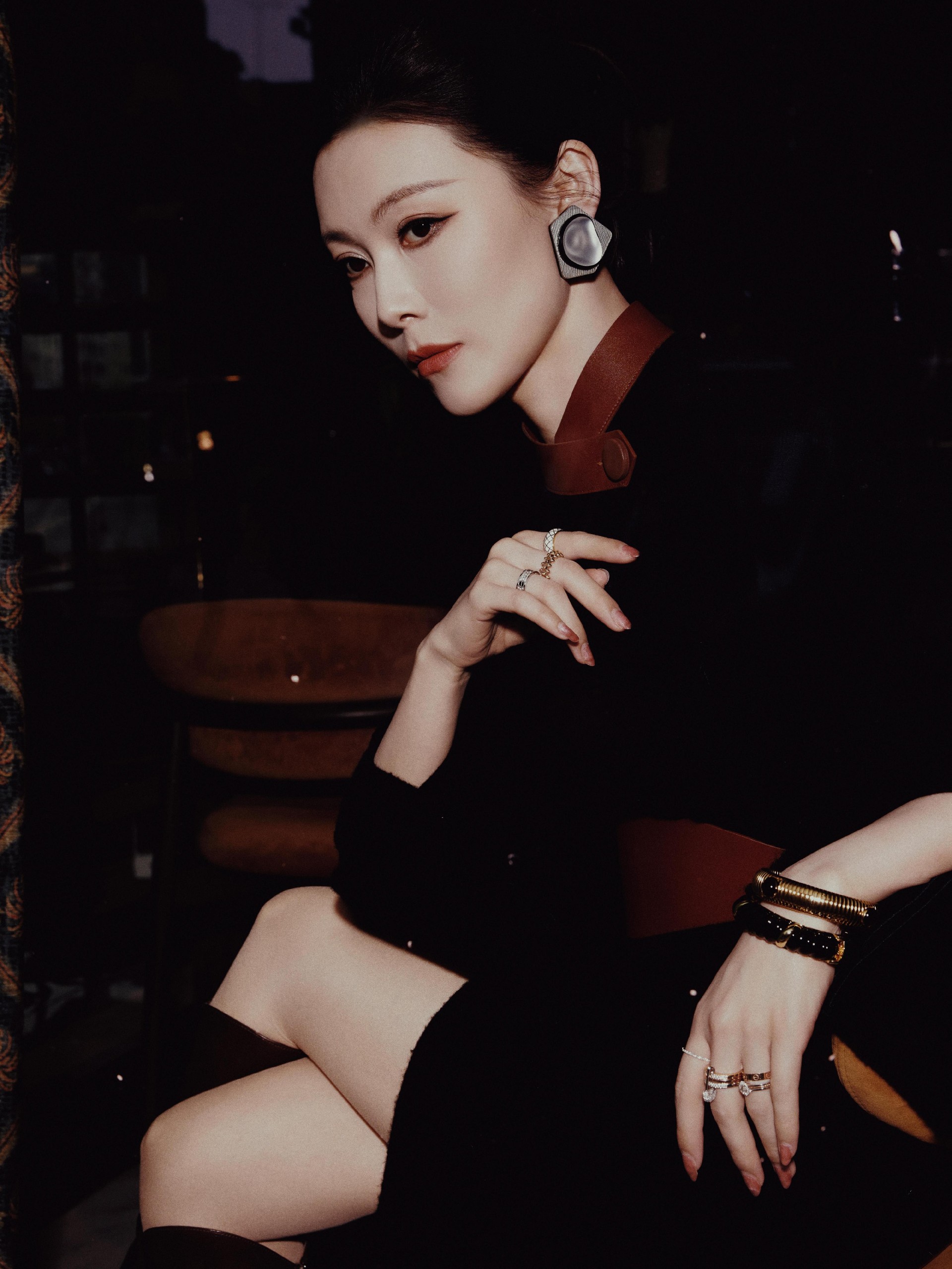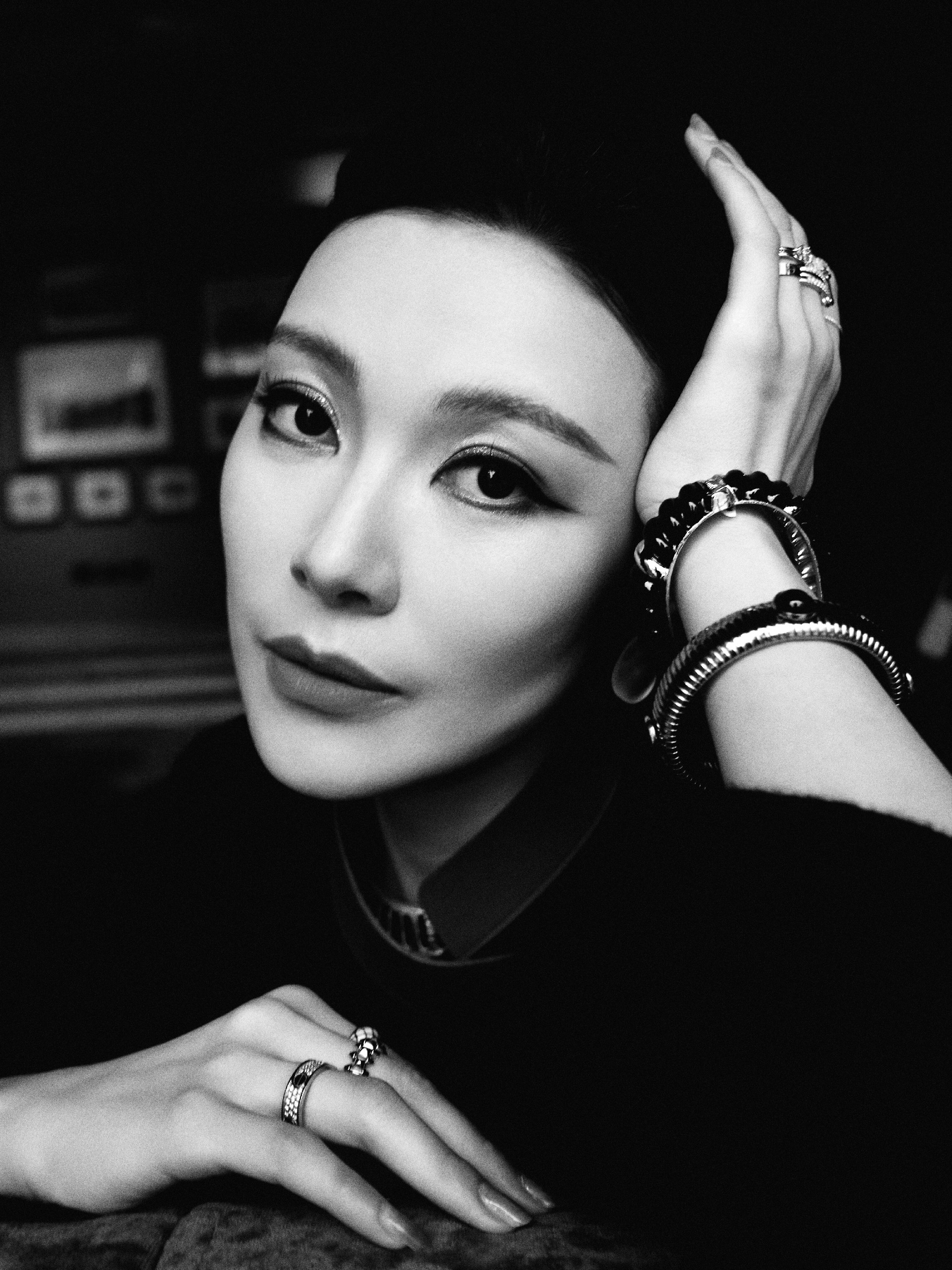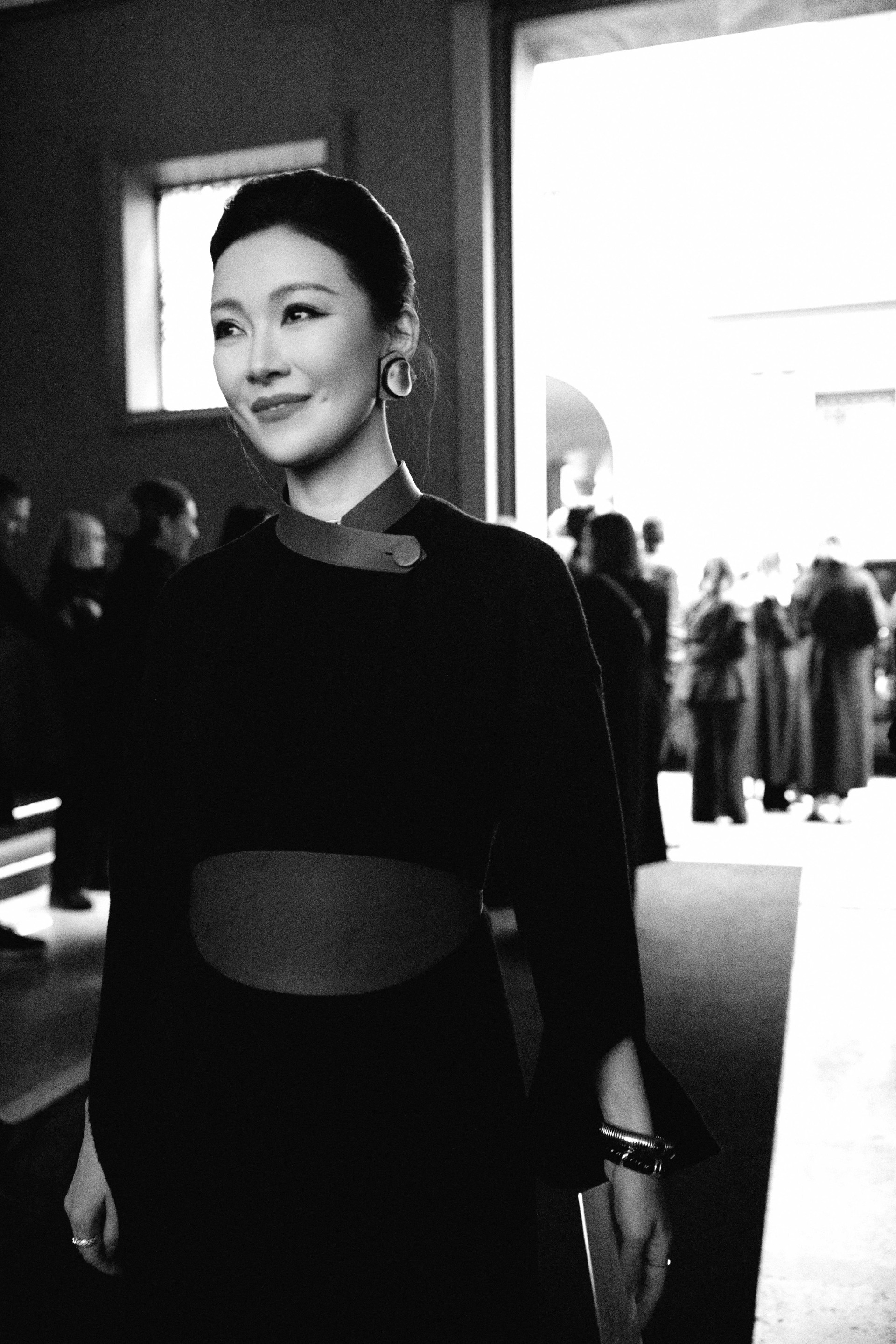 精致利落盘发,露出饱满流畅的脸部线条,东方女性的温婉端庄就这么自然地流淌出来,完美凸显了她对"阿玛尼式优雅"独特理解。
