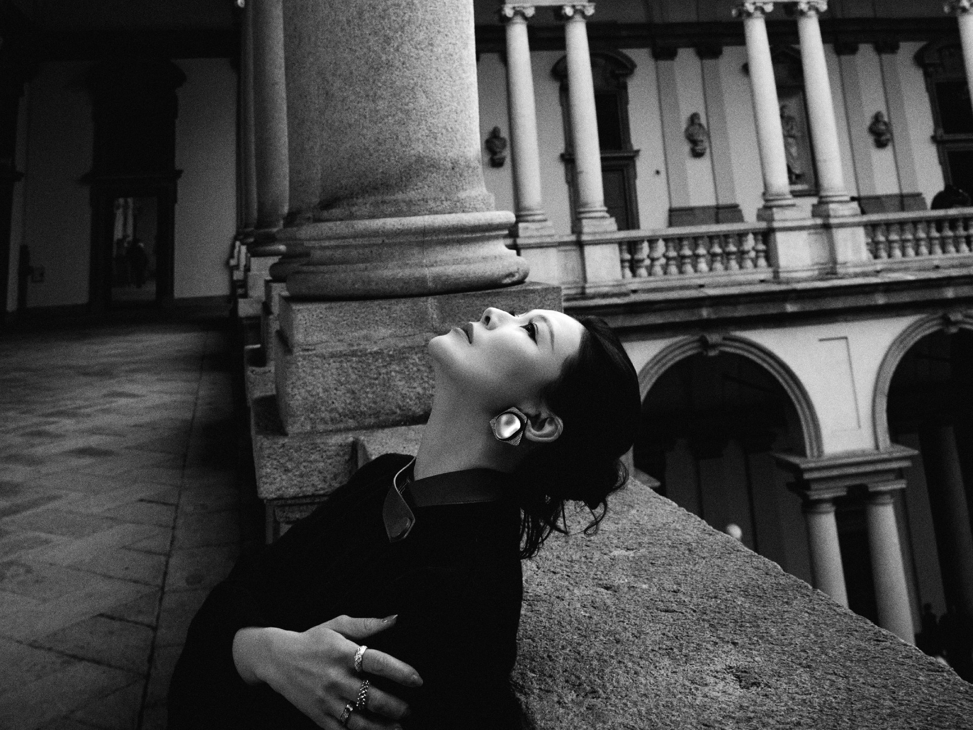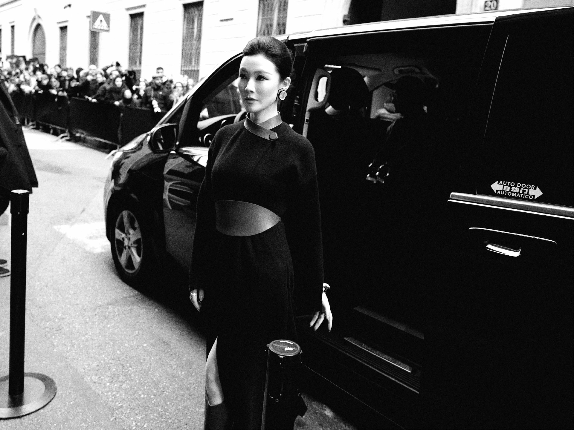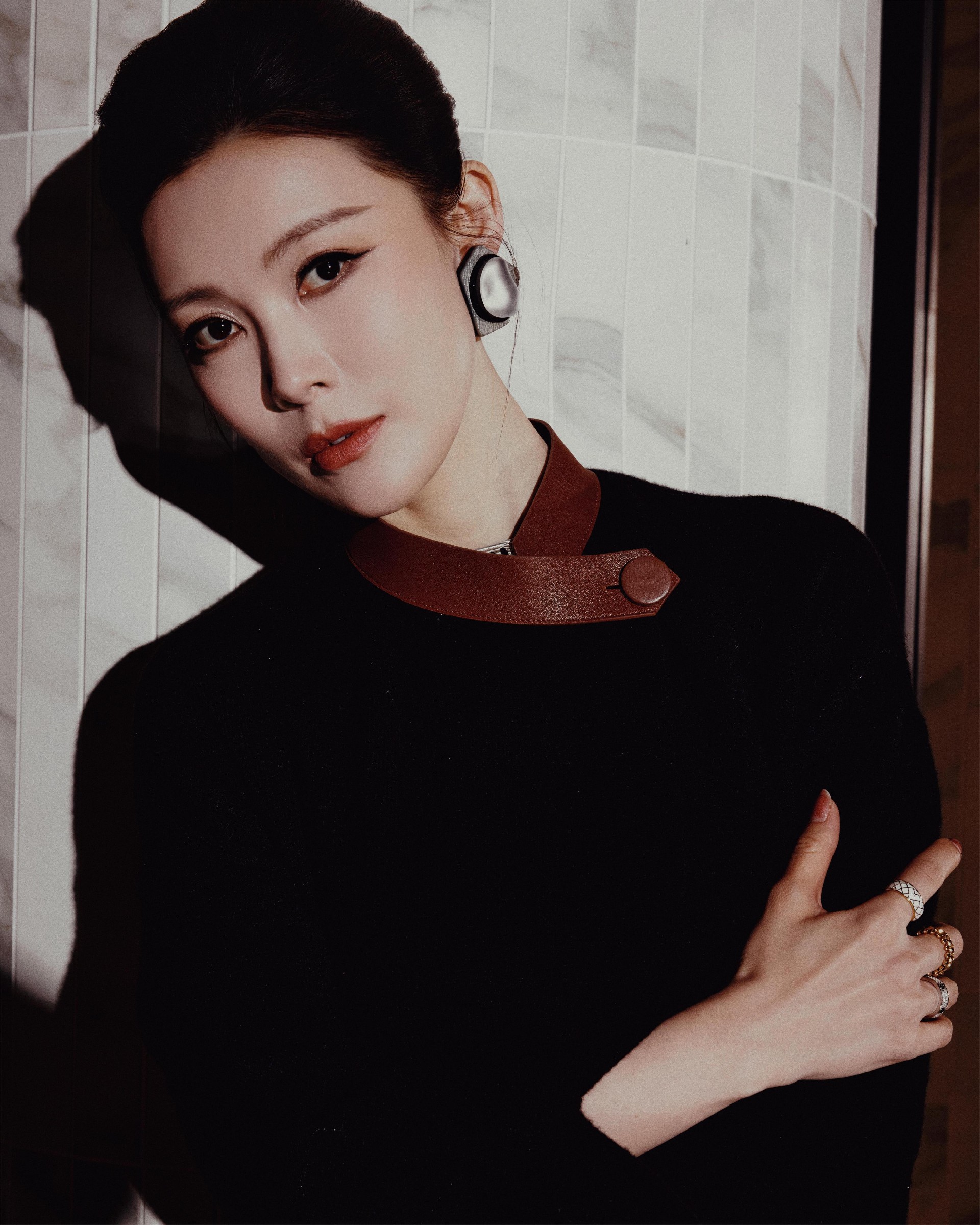 精致利落盘发,露出饱满流畅的脸部线条,东方女性的温婉端庄就这么自然地流淌出来,完美凸显了她对"阿玛尼式优雅"独特理解。