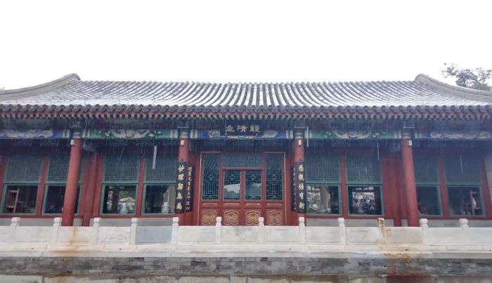 走进快雪堂,墨香扑面而来——这里因王羲之的《快雪时晴帖》石刻,在乾隆时期增建并命名,48方魏晋至元代的书法石刻镶嵌在后院墙壁,颜真卿、柳公权等名家作品俱全,其中《快雪时晴帖》仅28字却被誉为“天下法书第一”,如今这里仍是书法爱好者的“朝圣之地”。殿内地面的方形洞口更藏着古人的“黑科技”——“地龙” 供暖系统:地下“蜈蚣道”烧炭后热气循环,堪比现代地暖,“我还以为是藏宝的地方,没想到是冬天取暖用的!” 甘望星笑称。院内的 “垂花门” 也藏着密码:作为乾隆西苑花园的 “二门”,双层垂柱如花朵下垂,对应传统四合院 “大门不出二门不迈” 的礼仪。