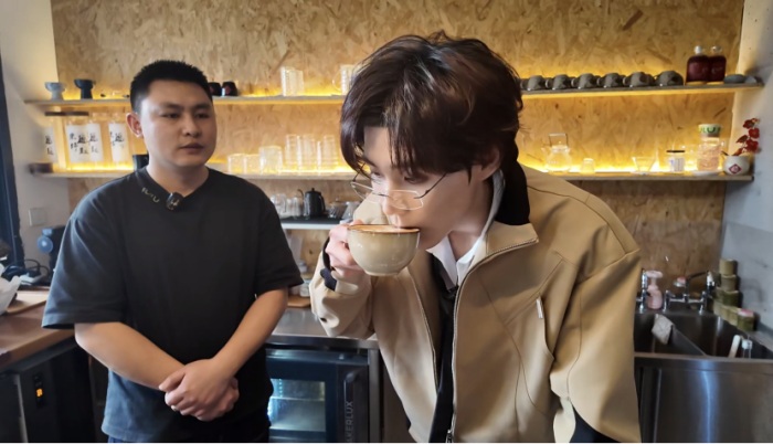 米露咖啡制作是此次直播的亮点,实现了传统米文化与现代生活的巧妙融合。在福禄米行咖啡厅,李权哲在主理人指导下学习制作米露拿铁:从装咖啡粉、布粉压实,到咖啡机萃取浓缩液,每一步都需精准把控。打奶环节更具技巧,主理人演示了17秒内打出绵密奶泡的关键手法,李权哲认真模仿练习。最终加入禄米米浆这一“灵魂步骤”,让浓缩咖啡、牛奶与米浆融合,制作出独具风味的米露拿铁。