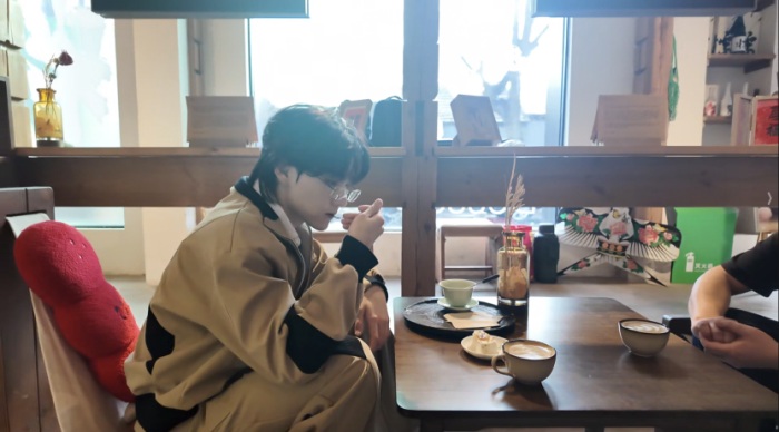 从手把手学习到独立制作,李权哲逐渐掌握窍门,精准把控28秒萃取时间,还挑战了简单拉花。虽中途出现奶泡粗糙等小插曲,但他毫不气馁,最终完成特色咖啡。品尝时他赞叹:“很有层次,牛奶、咖啡和米浆味道互不冲突,米香浓郁。”他还尝了现做米糕,米香与桂香交织,和咖啡堪称绝配。咖啡厅内的红米皂、米造型蜡烛、透光米通瓷等米主题文创,也让他大开眼界,这些文创将“柴米油盐酱醋茶”生活元素与文化创意完美结合。